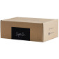 - Recyclable glass jars and a metal lid, held within a cardboard box.