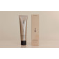 - Recyclable aluminium tube with a plastic lid, held within a cardboard and paper box.